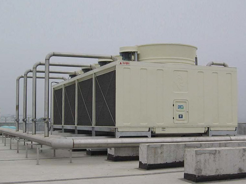 工業(yè)生產(chǎn)或制冷工藝過程中產(chǎn)生的廢熱,一般要用冷卻水來(lái)導(dǎo)走。冷卻塔的作用是將挾帶廢熱的冷卻水在塔內(nèi)與空氣進(jìn)行熱交換,使廢熱傳輸給空氣并散入大氣中。例如:火電廠內(nèi),鍋爐將水加熱成高溫高壓蒸汽,推動(dòng)汽輪機(jī)做功使發(fā)電機(jī)發(fā)電,經(jīng)汽輪機(jī)作功后的廢汽排入冷凝器,與冷卻水進(jìn)行熱交換凝結(jié)成水,再用水泵打回鍋爐循環(huán)使用。這一過程中蒸汽的廢熱傳給了冷卻水,使水溫度升高,挾帶廢熱的冷卻水,在冷卻塔中將熱量傳遞給空氣,從風(fēng)筒處排入大氣環(huán)境中。冷卻塔應(yīng)用范圍:主要應(yīng)用于空調(diào)冷卻系統(tǒng)、冷凍系列、注塑、制革、發(fā)泡、發(fā)電、汽輪機(jī)、鋁型材加工、空壓機(jī)、工業(yè)水冷卻等領(lǐng)域,應(yīng)用多為空調(diào)冷卻、冷凍、塑膠化工行業(yè)。